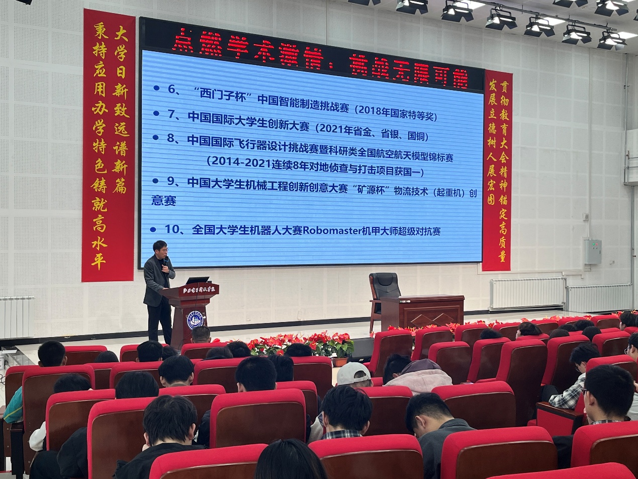 讲座伊始,成俊秀老师围绕“点燃学术激情,挑战无限可能”主题展开深度分享,严谨的学术态度与鲜活的创新氛围相互交融,极具感染力。成老师结合学生团队的实体科创作品如“自动双枪全向轮哨兵”机器人,直观呈现创意落地的实践路径,其展示的作品不仅兼具技术创新性与实际应用潜力,更让在场师生深刻感受到科创实践的魅力。讲座中成老师还系统讲解“机器人类别介绍”等专业知识,涵盖真长护卫攻城等多类型机器人,内容分类清晰、知识密度高,充分彰显出扎实的学术梳理能力。讲座结束后,同学们纷纷表示收获颇丰,不仅切实体会到学院在应用型人才培养、科创实践领域的扎实布局,更坚定了投身学科竞赛与科创实践的决心。未来将以更积极的态度探索专业知识,努力将理论转化为实际创新能力。