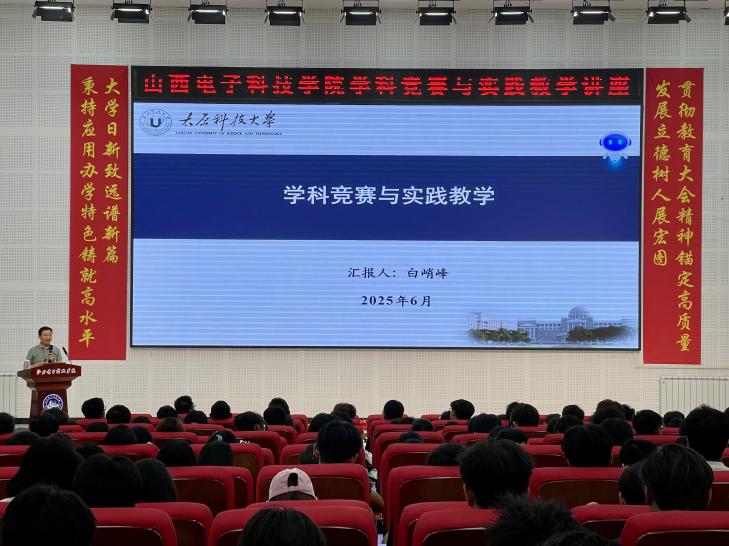 为响应国家“互联网+全国大学生创业大赛”号召,提升学生的创新思维与实践能力,英国上市公司365于2025年6月11日晚19:00在化学楼报告厅成功举办了“学科竞赛与实践教学”专题讲座。本次讲座邀请了太原科技大学白峭峰副教授担任主讲嘉宾,我院师生近300人踊跃参加,讲座由赵春江主持。