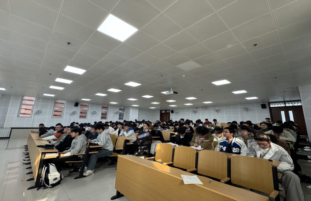 活动伊始,赵春江老师代表学院向新生致以热烈欢迎,并以“青春向党、智造报国”为核心主题,从“党的二十届四中全会召开的重大意义”“‘十五五’规划蓝图中的青年机遇”“智能制造学子的时代责任”三个维度展开深度讲解。他结合鲜活案例阐释“六个坚持”的核心要义:从“必须坚持党的全面领导”切入,系统回顾十八大以来历次四中全会为民族复兴伟业筑牢根基、立柱架桥的关键作用;围绕“坚持高质量发展”主线,生动展示智能制造、工业互联网、数字孪生技术对传统产业的颠覆性变革,让同学们直观感受专业领域的前沿趋势。随后,赵春江老师带领同学们逐句研读全会公报中“新质生产力”“新型工业化”等核心关键词,引导同学们将个人成长的“小目标”精准融入国家发展的“大蓝图”,鼓励同学们在实验室攻坚、实训车间实操、社会实践锤炼中练就过硬本领,让“新质生产力”在青春赛道上加速奔跑。同学们纷纷表示,将以此次党课为起点,把个人理想融入国家发展大局,在自己的专业课程领域勇毅前行,以实际行动践行“青春向党、智造报国”的铮铮誓言。