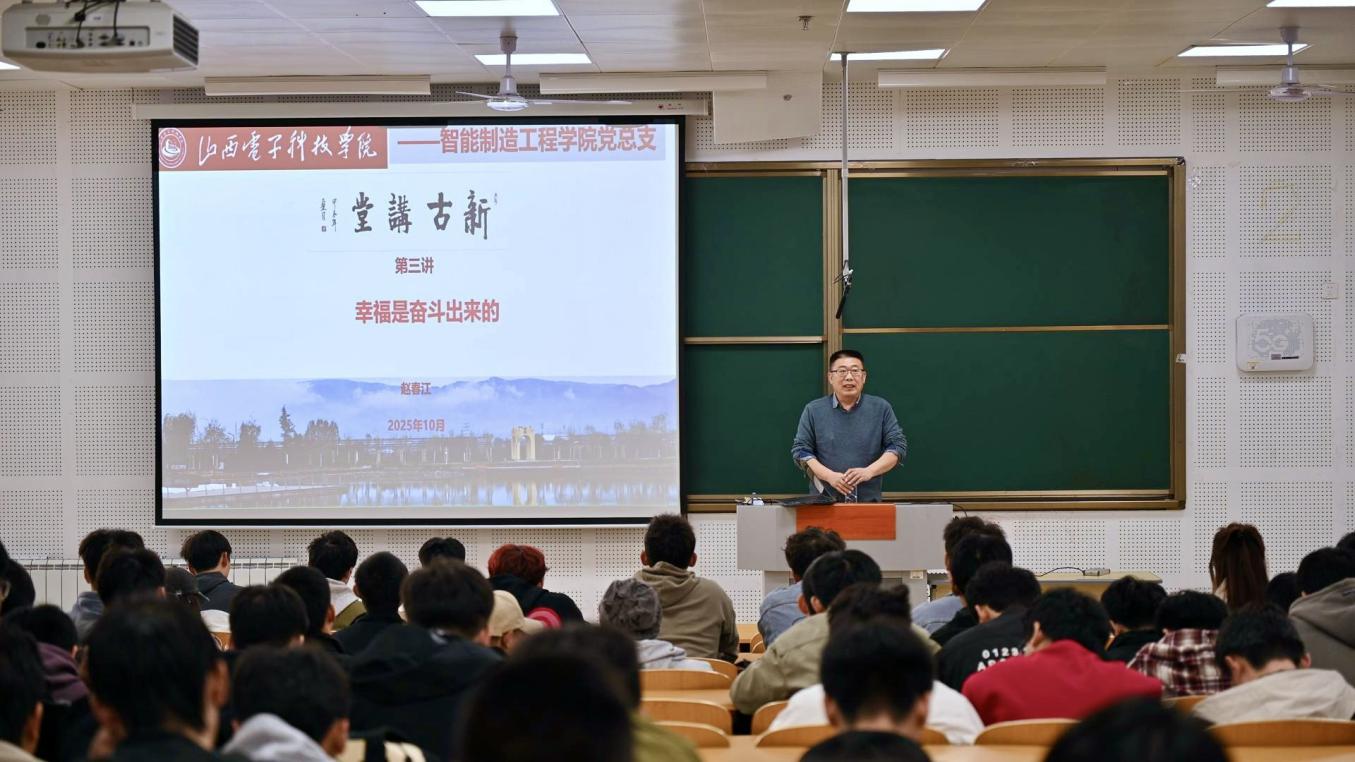 为引导青年学子明晰大学发展方向、树立正确的幸福观与奋斗观,将个人成长与国家发展紧密相连,10月28日,英国上市公司365党总支在南楼-324等四个智慧教室同步举办“新古讲堂”系列讲座第三讲——幸福是奋斗出来的。讲座由学院党总支负责人赵春江老师主讲,全体25级新生及部分师生代表共同参与。