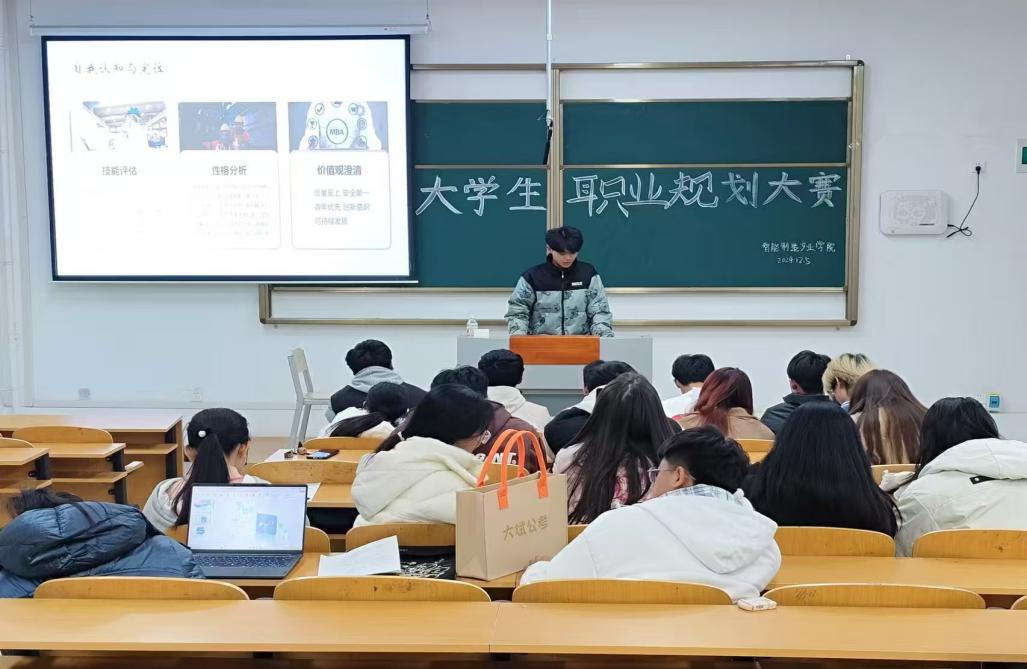 为帮助同学们明确职业发展方向,发掘自身潜能,树立正确的成才观和就业观,2024年12月5日至6日,智能制造产业学院在南楼106开展了一场“筑梦青春志在四方,规划启航职引未来”职业生涯规划大赛,本次活动由部分大一和大二的同学参加。